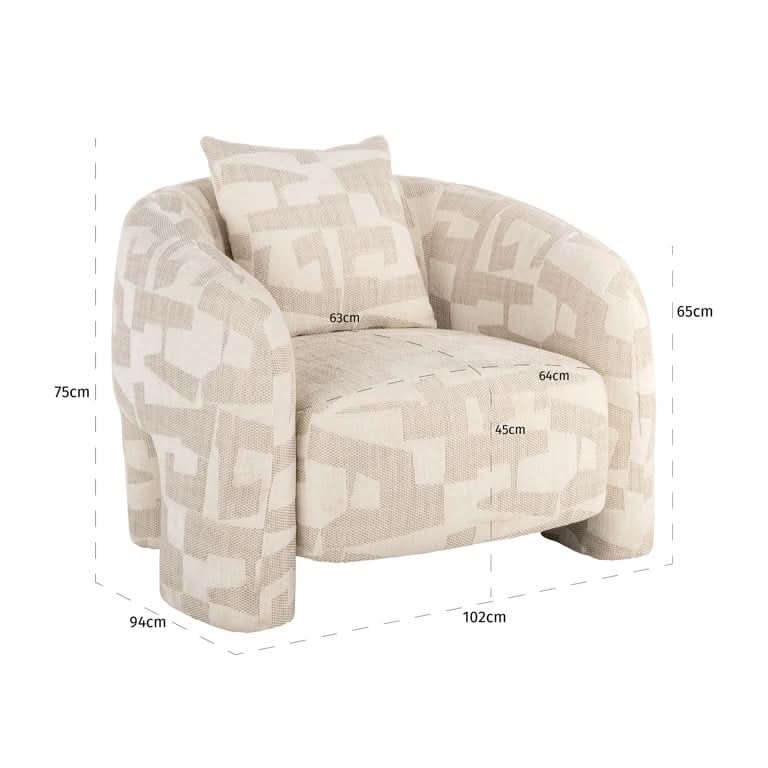С Стул отдыха Тоскана (бежевый график) от Richmond Interiors Современный комфорт движется в ваш дом. Органически изогнутая форма и элегантный графический бежевый рисунок создают стильное утверждение, будь то пространство для чтения, в гостиной или в коридоре. В том числе задние подушки в правильном дизайне.